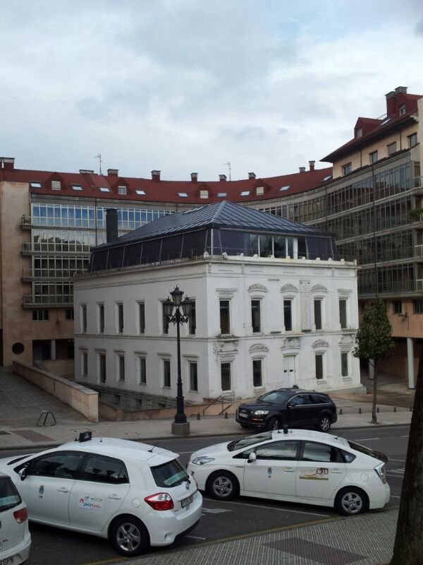 Reforma de la cubierta en el Colegio Oficial de Arquitectos de Asturias en la sede de Oviedo. Retirada de la cubierta plana, denominada visera, para modificar la estructura del edificio, volviendo a su estado original con la formación de una cubierta a cuatro aguas. El edificio original, palacete afrancesado, fue construido en el siglo XIX, para uso residencial. A mediados del siglo XX, el palacete fue objeto de una adaptación funcional con cambio de uso, convirtiéndose en el Colegio Hispania. En agosto de 2001, el edificio propiedad del Ayuntamiento de Oviedo, fue adquirido por el COAA para ubicar en él, su Sede colegial de Oviedo.