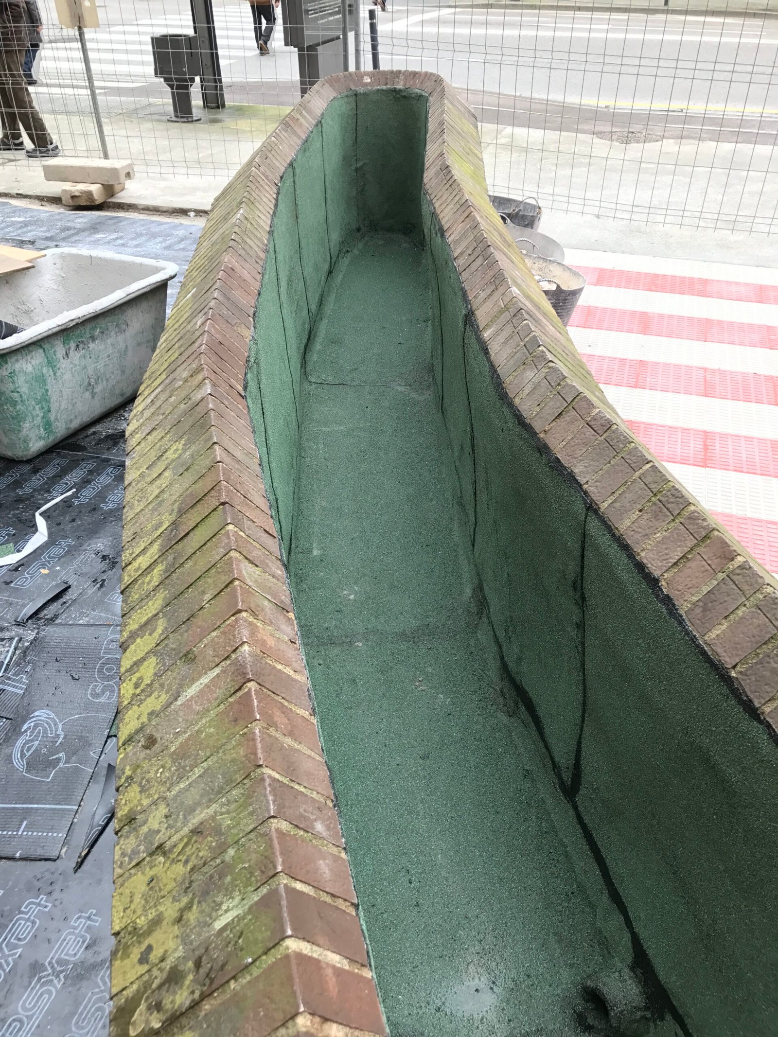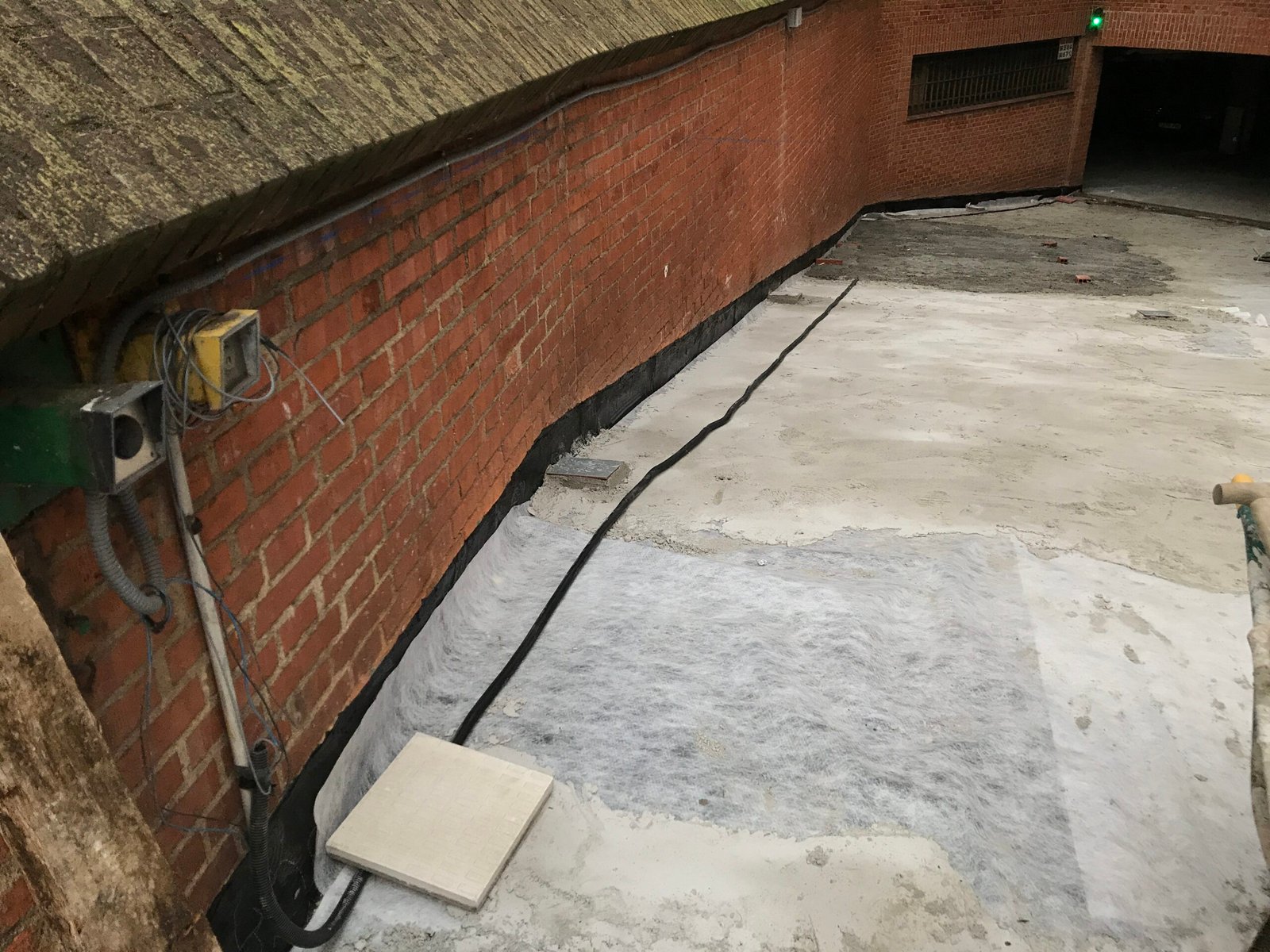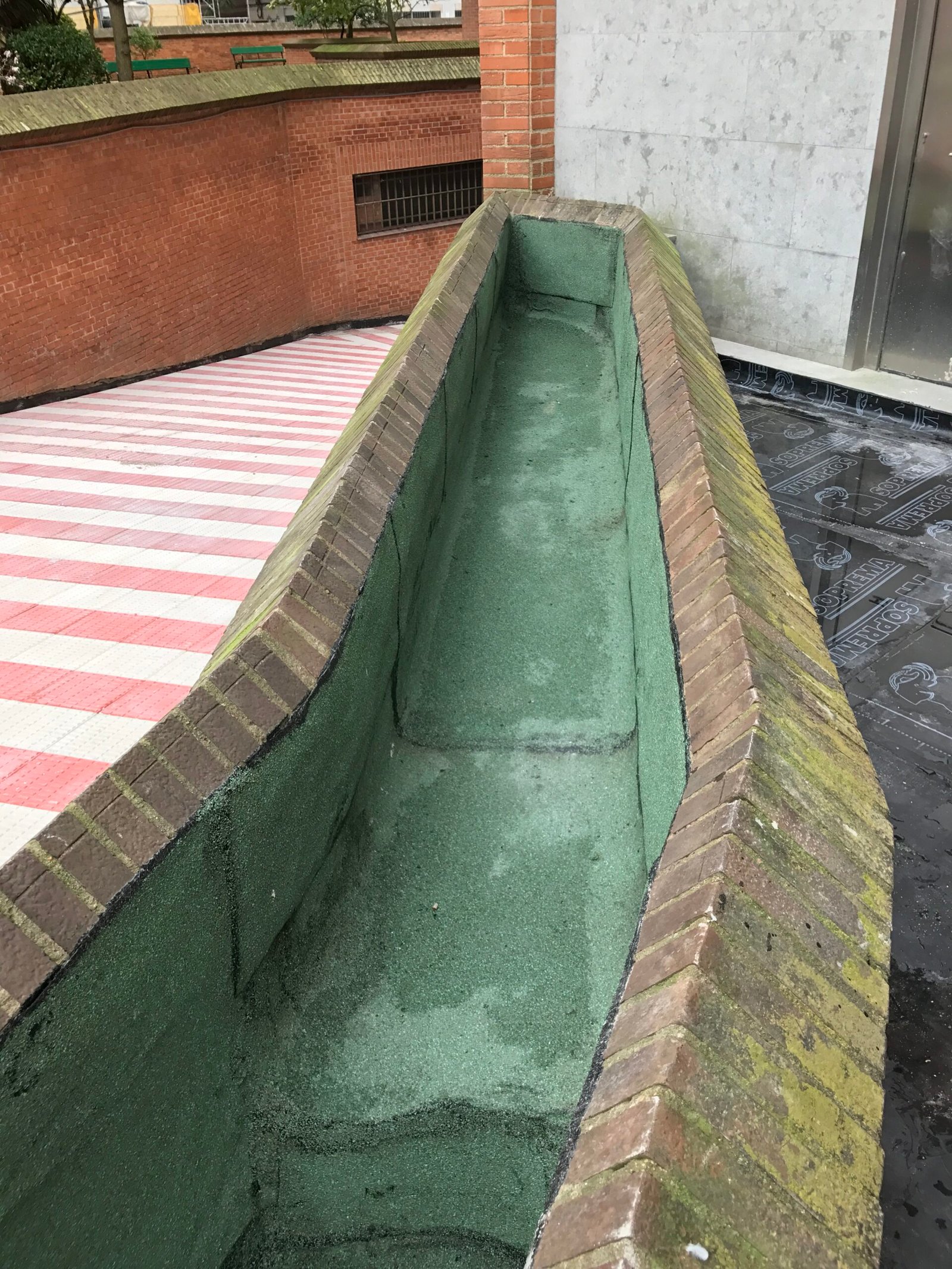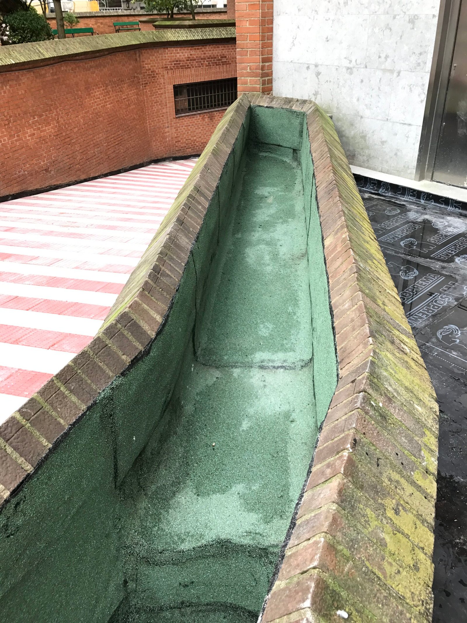 Impermeabilización de rampa de garaje, jardineras y acera, para evitar la entrada de agua al interior de los garajes, así como reparación de las armaduras de la estructura de hormigón de los forjados, deteriorada por la entrada de agua. Pasivado de armaduras, y recomposición de volumen con morteros sin retracción en vigas y viguetas de la estructura de los forjados.