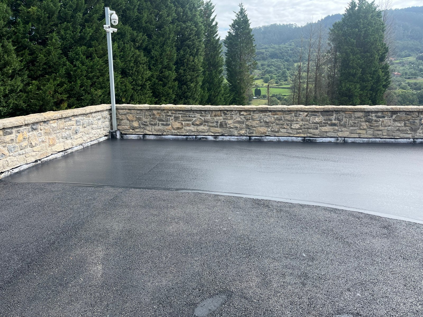 Impermeabilización de forjados para evitar la entrada de filtraciones de agua a la zona de toneles. Aplicación de doble lamina asfáltica de LOM y lamina parking de la marca Soprema con terminación de mezcla bituminosa en caliente aplicada en dos capas de asfalto y terminación en resinas de Composan, con la colaboración de Impercanal-División asfaltos.